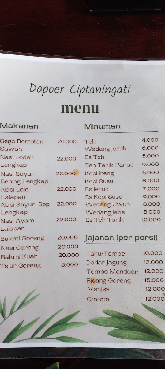 Dapoer Ciptaningati ꦣꦥꦸꦂꦕꦶꦥꦠꦤꦶꦁꦲꦠꦶ Menu